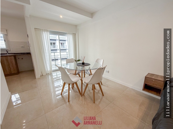 Departamento de 1 ambiente totalmente reciclado. Amplio ambiente a la calle con balcón saliente. Cocina con amoblamiento a medida y ventilación natural. Placard. Baño completo con mampara. Aberturas en DVH. Pisos de porcelanato. Aire frio calor. Muebles a estrenar. 27.75 mts. Ubicado en Entre Rios y Rivadavia.