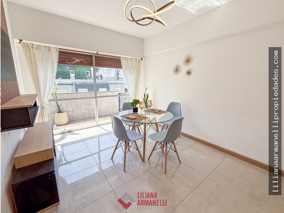 Departamento de 2 ambientes totalmente reciclado. Amplio living comedor. Balcón saliente. Cocina separada por barra desayunadora. Heladera. Lavarropas. Balcón saliente. Vereda de sol. Dormitorio a la calle con placard. Baño completo. Muebles a estrenar. 34 mts. Ubicado en Falucho y Buenos Aires.