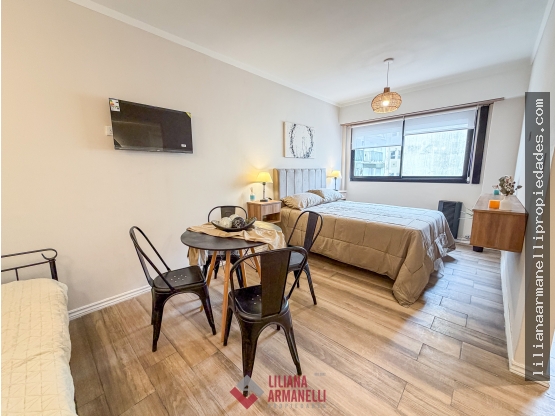 Departamento de 1 ambiente totalmente rciclado. Amplio. Cocina separada con ventilación natural. Heladera. Lavarropas. Microondas. Placard. Súper luminoso. Baño completo con mampara. Muebles a estrenar. 28 mts. Ubicado en Falucho y Santa Fé.