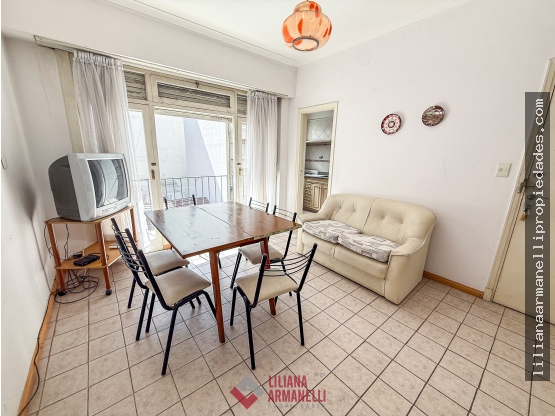 Dólares AmericanosDepartamento de 2 ambientes a la calle. Amplio living comedor. Balcón saliente. Vereda de sol. Cocina separada con ventilación natural. Dormitorio con placard y piso de parquet plastificado. Baño completo con mampara. 38 mts. Ubicado en Paseo Aldrey.