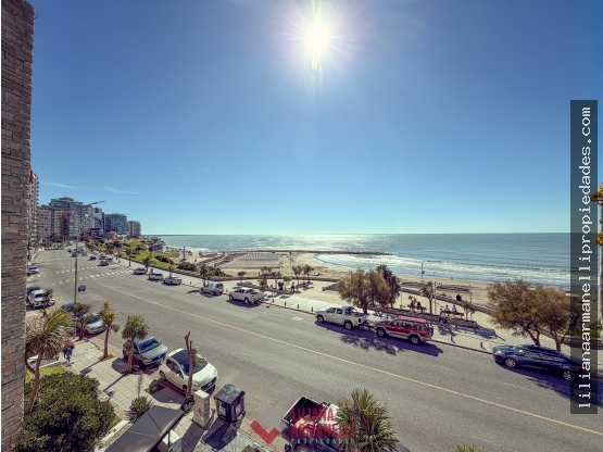 Dólares AmericanosDepartamento de 3 ambientes frente al mar. Amplio living comedor a la calle. Balcón saliente con vista plena al mar. Cocina separada con ventilación natural. Dormitorio a la calle con placard y vista al mar. baño completo con bañera. Segundo dormitorio al cfte. 66 mts. Cochera. reciclado. Ubicado en Playa Varese.